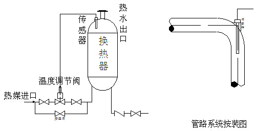 四、感溫探頭裝于換熱器出口處或出水管道上。(如圖示)